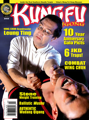 | Rock Solid! With all the modern workout programs and gadgets guaranteed to pump you up, many students of traditional Chinese martial arts have lost sight of much older body building techniques. In use long before contemporary free weights and gym machines, the Chinese stone lock has been part of traditional kung fu regimens since at least the Han Dynasty (206 BC-220 AD). The stone lock has been immortalized in kung fu trainingevident in countless movies, pictorials, and martial textsand its results are acclaimed through the tales of old masters and incredible feats. Though most kung fu rock exercises seem to target the torso and arms, training with stone locks and weight-balls helps build dynamic strength and endurance throughout the entire body. Swinging and pumping the weight of the stone builds muscle and bone strength, while maintaining ones grip on the handle results in great forearm, wrist, and grip power. The synchronization of shifting stances and various swinging exercises greatly influences bodily coordination and balance. The endurance required also improves cardiovascular stamina and provides aerobic exercise. Origins of the Stone Lock It is well known that the ancestors of todays kung fu systems were in active development prior to the Xia Dynasty (2000-1500 BC). Likewise, the basic Chinese security lock, which evolved into the peculiar kung fu training tool, had already been invented. Of course, the stone locks made for physique training were much heavier and larger than their spring-rigged counterparts. While traditional locks carved from rock can still be found today, some modern practitioners have enjoyed the same healthy results by using concrete or metal replicas. The stone lock is still relatively obscure in the West, but in many parts of rural Asia (and urban martial arts schools as well), lock-shaped weights and stones for muscle and stamina improvement are often seen. Stone training, which includes the large Tai Chi ball and tiger claw spheres, is not a popularly accepted means of muscle building. Most modern martial artists have opted for gym-style plates and bells because they are readily available and the general accepted means of bodybuilding in our modern society. Many practitioners, however, are discovering that traditional methods and tools can produce the unmistakable results that parallel modern weight training. Hooking up to an electro-stimulator may be the fast way, but it lacks the priceless link to a land far away and a time long ago. Shaolin Temple and Beyond From its ancient origins, the weight-lock soon found its way into the gates of Henans Shaolin monastery and subsequently spread to affiliated temples and military schools throughout the Chinese Empire. In the North, the Shaolin monks of Shandong Province retained and fostered the old routines introduced from Songshan. The Northern systems also innovated their own exercises and theories for strengthening the muscles, bones, and tendons which were passed through the generations to Grandmaster Yang Shao-Shan, and his monastic contemporaries in the Shandong temple. Following the Communist ascension in China, Monk Yangs layman disciple, General Yin Chian-Ho, fled to Taiwan with the Nationalist Party he had fought for. In Taiwan, Shifu Yins mastery of Northern style Shaolincomplete with stone training routineswas inherited by Cheng Tsang-Lu. The young Lu rose in |