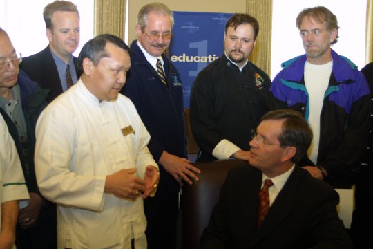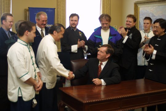 | Success! Mike Leavitt is convinced Tai Chi & Qigong are worthwhile health pursuits as well as ancient art forms and signs a declaration making April 7-13, 2003 the official Tai Chi and Qigong Week in Utah. | ||||||||||